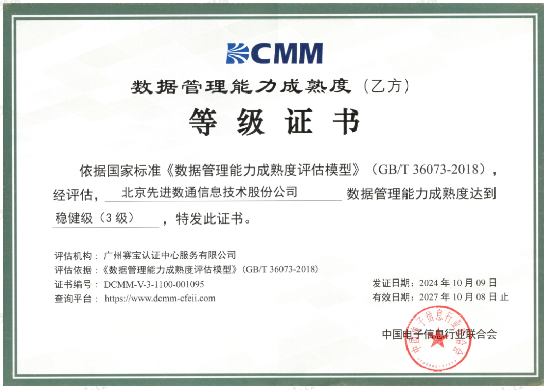 近期,中国电子信息行业联合会公布了最新一批顺利获得数据管理能力成熟度(DCMM)贯标等级认证的企业名单。K8国际·马竞成功取得数据管理能力成熟度稳健级(三级)认证。这一认证的取得,标志着K8国际·马竞在数据治理体系构建和数据管理与应用能力方面,已经达到了国家权威组织认可的标准。这不仅是对K8国际·马竞在数据管理领域专业能力的肯定,也是对其在有助于数字化转型服务和数据驱动决策方面所做努力的认可。