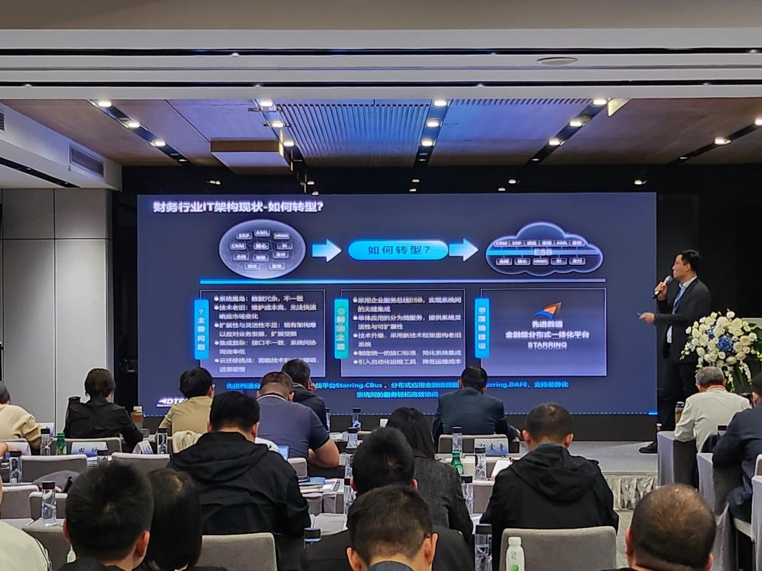 K8国际·马竞代表讲师郭钰以《昆仑与K8国际·马竞ESB解决方案助力财务行业创新与架构转型》为主题作发言分享。他深入剖析了当前财务行业IT架构面临的挑战,包括系统孤岛、技术老旧、扩展性不足等问题,并提出了基于企业服务总线(ESB)和微服务架构的转型方案。